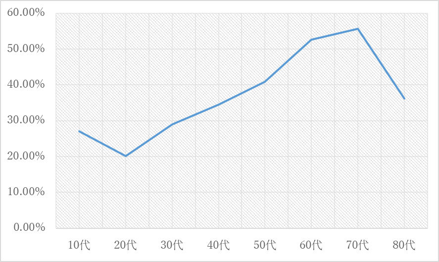 | 年代 | 10代 | 20代 | 30代 | 40代 | 50代 | 60代 | 70代 | 80代 | 計 |
