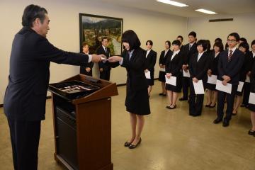 彦根市総合計画審議会の会長である大田様と松山様から「審議会答申『彦根市総合計画後期計画の策定について』」を受けました。