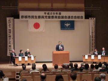 ひこね市文化プラザにおいて、「平成28年度彦根市民生委員児童委員協議会連合会総会」を開催されましたので出席させていただきお祝いのことばを述べました。