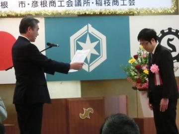 彦根商工会議所において、「第63回彦根市優良従業員表彰式、第9回彦根地域障害者雇用推進事業所表彰式」を彦根商工会議所、稲枝商工会とともに実施しました。