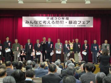 ビバシティ彦根で開催しました「平成30年度みんなで考える防犯・暴追フェア(第一部 防犯功労者表彰)」に出席しました。