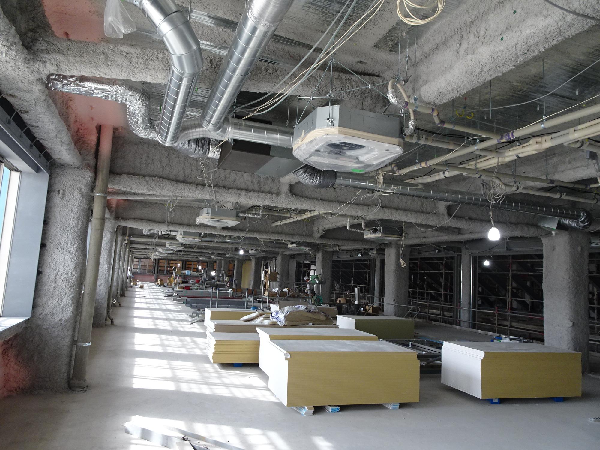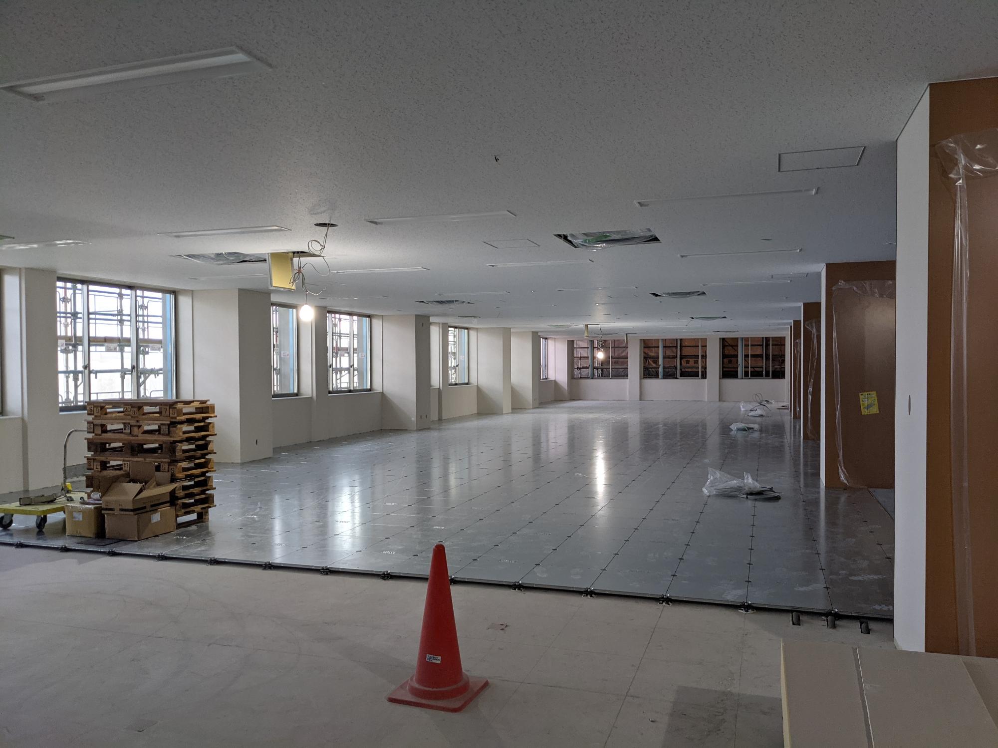 内部工事はOAフロア敷設や天井ボード張りをはじめ、設備機器の取付を行っています。