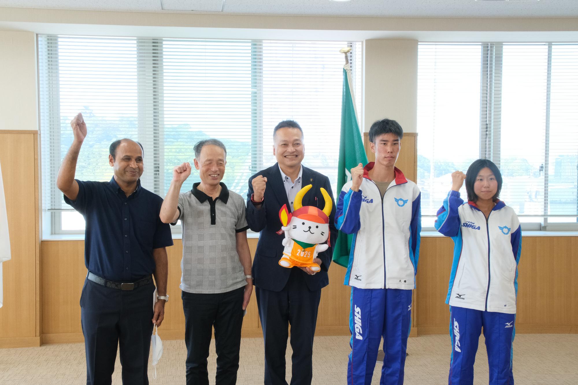 本大会でのご活躍を祈願し、令和4年9月26日(月曜日)に本庁舎4階特別応接室にて、激励会を開催しました。