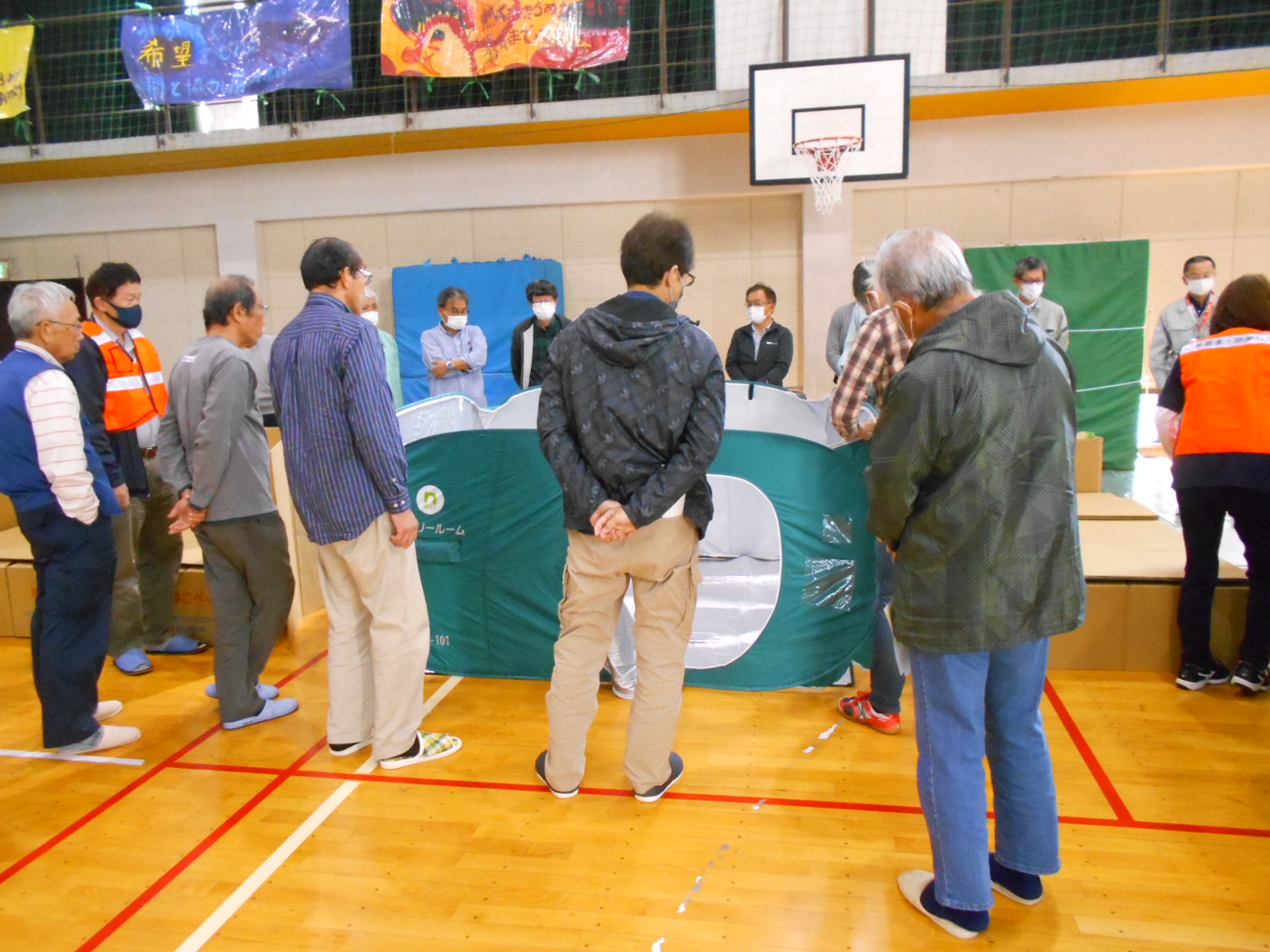 小泉町自治会、自主防災会と震度6強の地震が発生したと想定して訓練を実施しました。プロシードアリーナHIKONEに避難後、危機管理課による「避難所での生活や避難所運営について」と社会福祉課による「福祉避難所について」を講習しました。災害情報入手手段、避難所での生活や福祉避難所について学ぶ機会となりました。