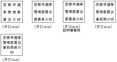第23条 委員会、委員長および選挙長の公告式は、彦根市公告式条例(昭和36年彦根市条例第47号)第5条の規定を準用するものを除くほか、同条例第2条第2項に定める掲示場に掲示するか、または市の公報に掲載してこれを行う。
