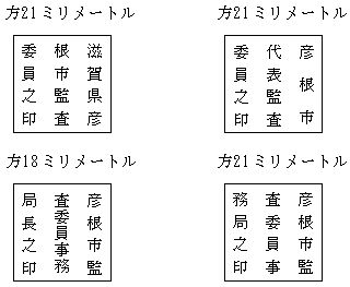 第7条 監査委員および代表監査委員ならびに事務局に関する公印を次のとおり定め、局長が保管する。