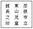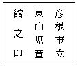 | 彦根市立東山児童館印 | 1 | 正方形 | 21 | かい書 | 東山児童館名をもってする公文書 |