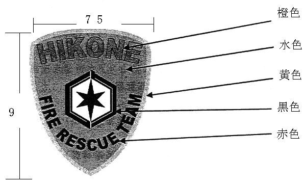 | 製式 | かぶと型とし、前後部にひさしをつける。内部は、頭部の振動を防ぐ装置をつけ、あごひもは合成繊維とし、顔面保護板(シールド)はポリカーボネート製の上下スライド構造とする。帽体両側面に「彦根消防」と黒で表示する。