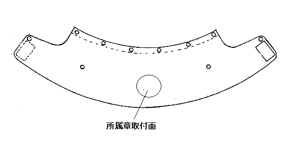 | 所属章 | しころ中央部に、所属別ワッペン(黒字の所属章)を取り付ける。