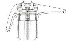 襟トリミング入りとし、両胸に各1個のポケットを付ける。