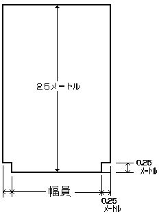 (1) 計画高水流量が1秒間につき100立方メートル未満であって、かつ、川幅が10メートル未満である区間においては、幅員は、2.5メートル以上とし、建築限界は、次の図に示すところによること。