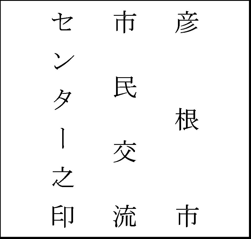 | 彦根市市民交流センター印 | 1 | 正方形 | 21 | 楷書 | 彦根市市民交流センター名をもってする公文書 |
