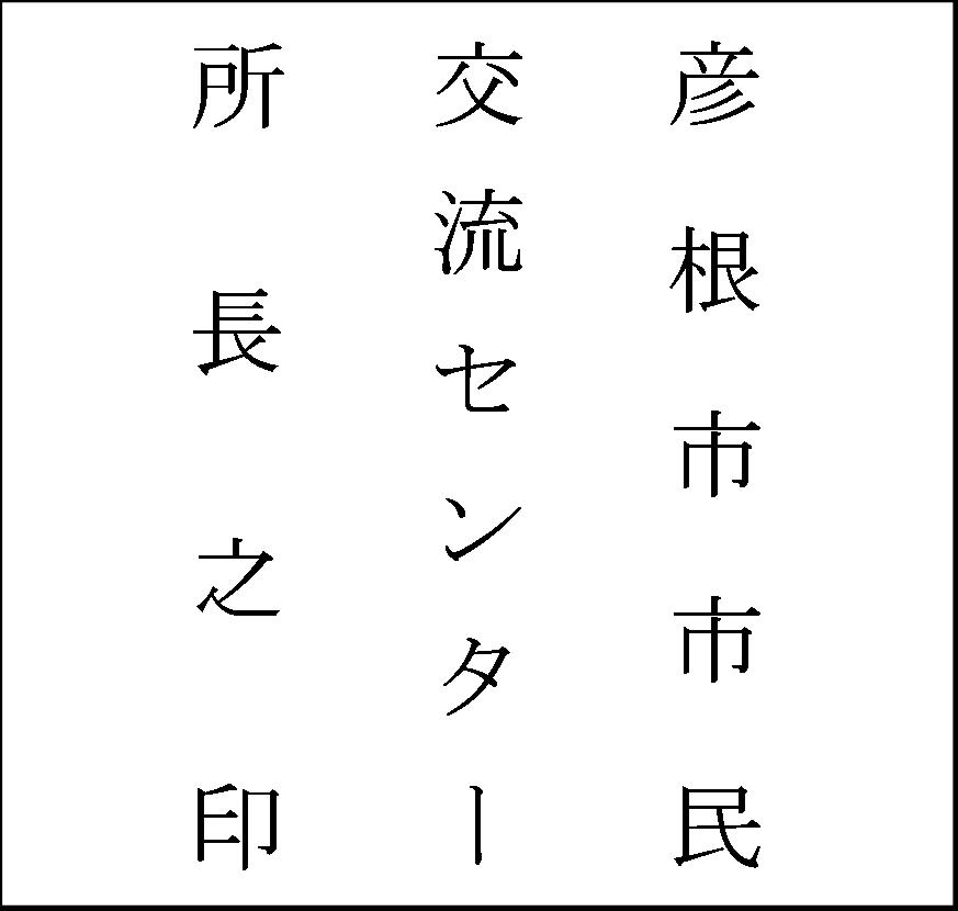 | 彦根市市民交流センター所長印 | 2 | 正方形 | 21 | 楷書 | 彦根市市民交流センター所長名をもってする公文書 |
