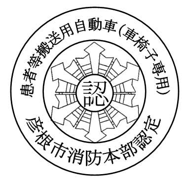 2 消防長は、前項の審査の結果、認定基準に適合していると認めるときは、当該申請者に対し、患者等搬送事業等認定通知書(別記様式第5号)により通知するとともに、患者等搬送事業等の認定証(別記様式第6号)、患者等搬送事業等の認定マーク(別記様式第7号)および患者等搬送用自動車または患者等搬送用自動車(車椅子専用)の認定マーク(別図)を交付するものとする。